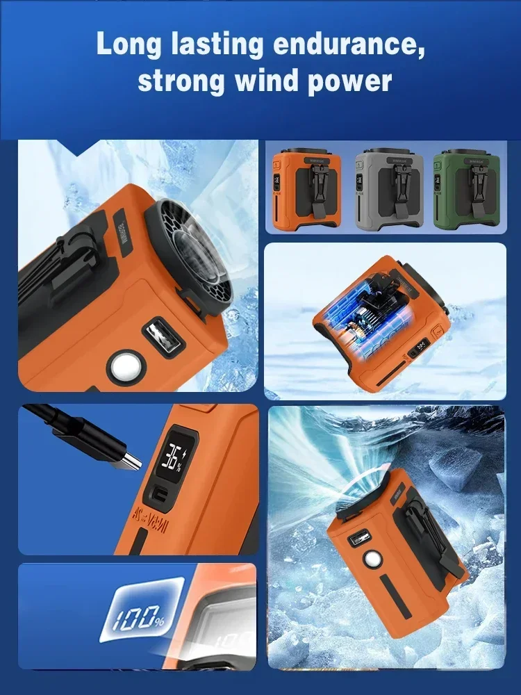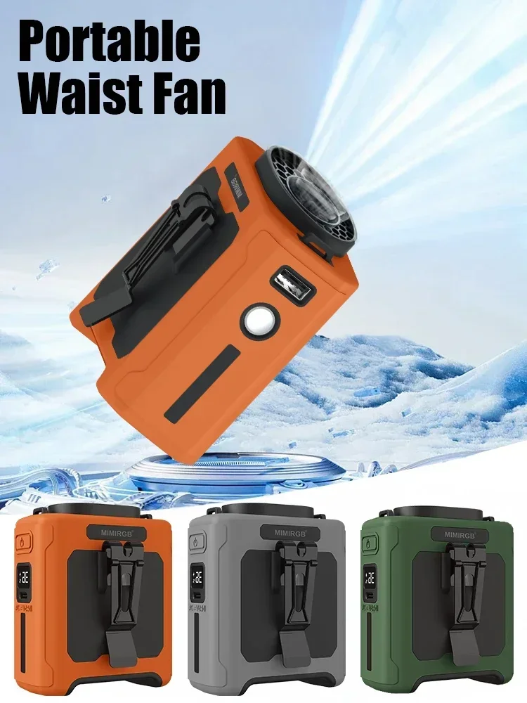 Portable Waist Fan with 10000mAh Power Bank & LED Light