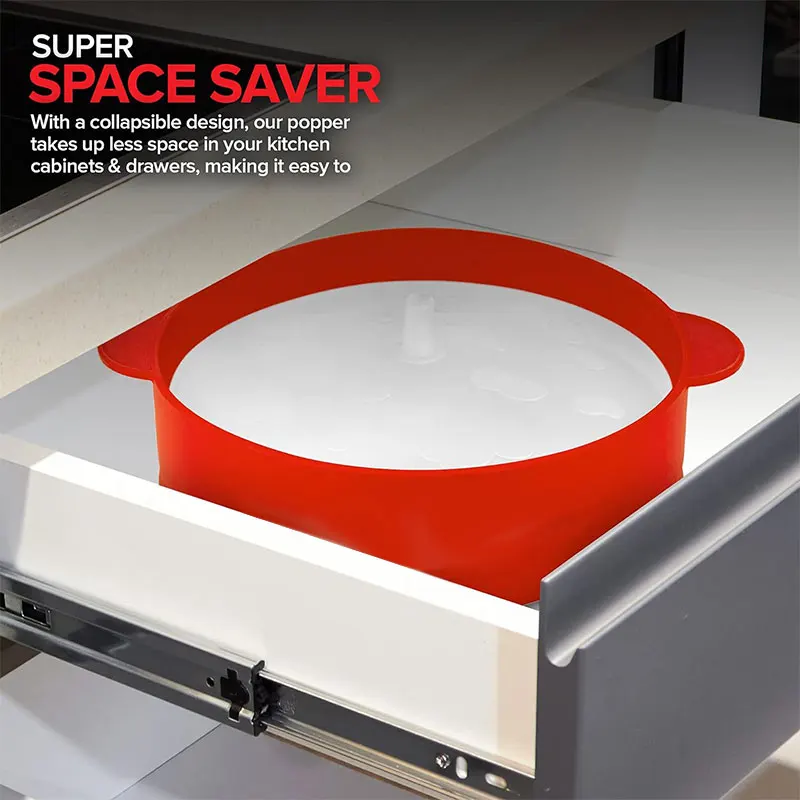 • Collapsible Design: Our silicone popcorn popper conveniently folds up to take up less space, making it easier to store.