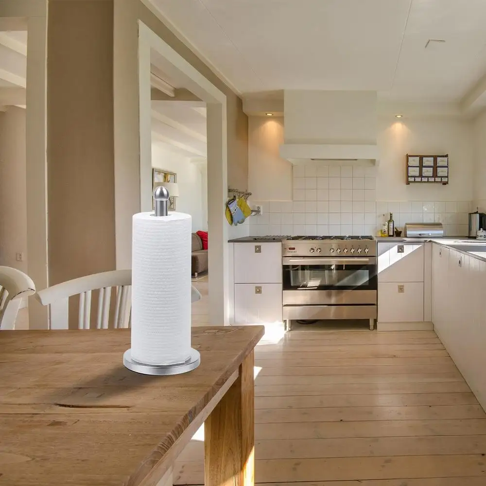 3.【Innovative Design】:The Paper Towel Stand has an innovative design, the stand can be placed on any countertop and there is no worry to be tipped over. For a perfect one-handed tearing with every gentle pull.