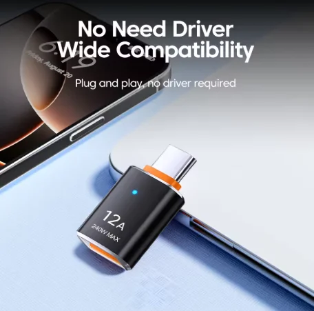 USB 3.0 to Type-C OTG Adapter with LED, USB-C Male to USB-A Female